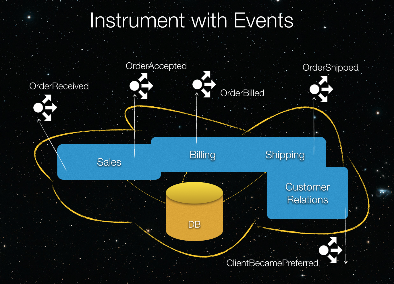 Instrumenting your monolith with events can help for a variety of reasons. First and foremost, it adds visibility inside your monolith.