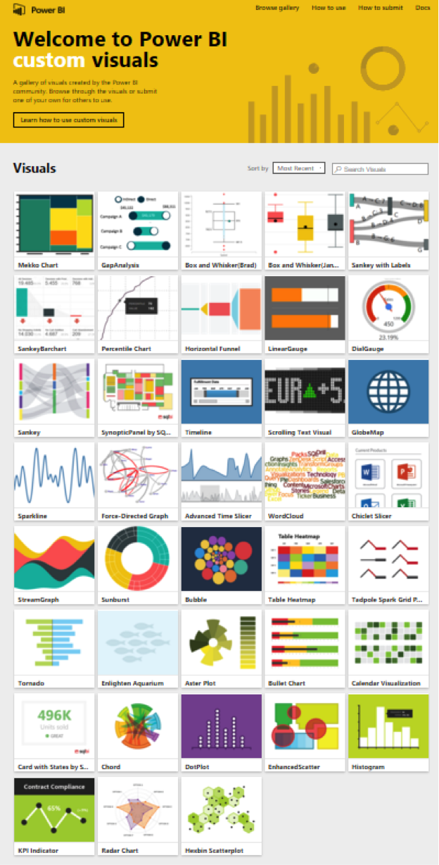The best example of this is in Power BI. The set of built-in visualizations is already fairly strong: